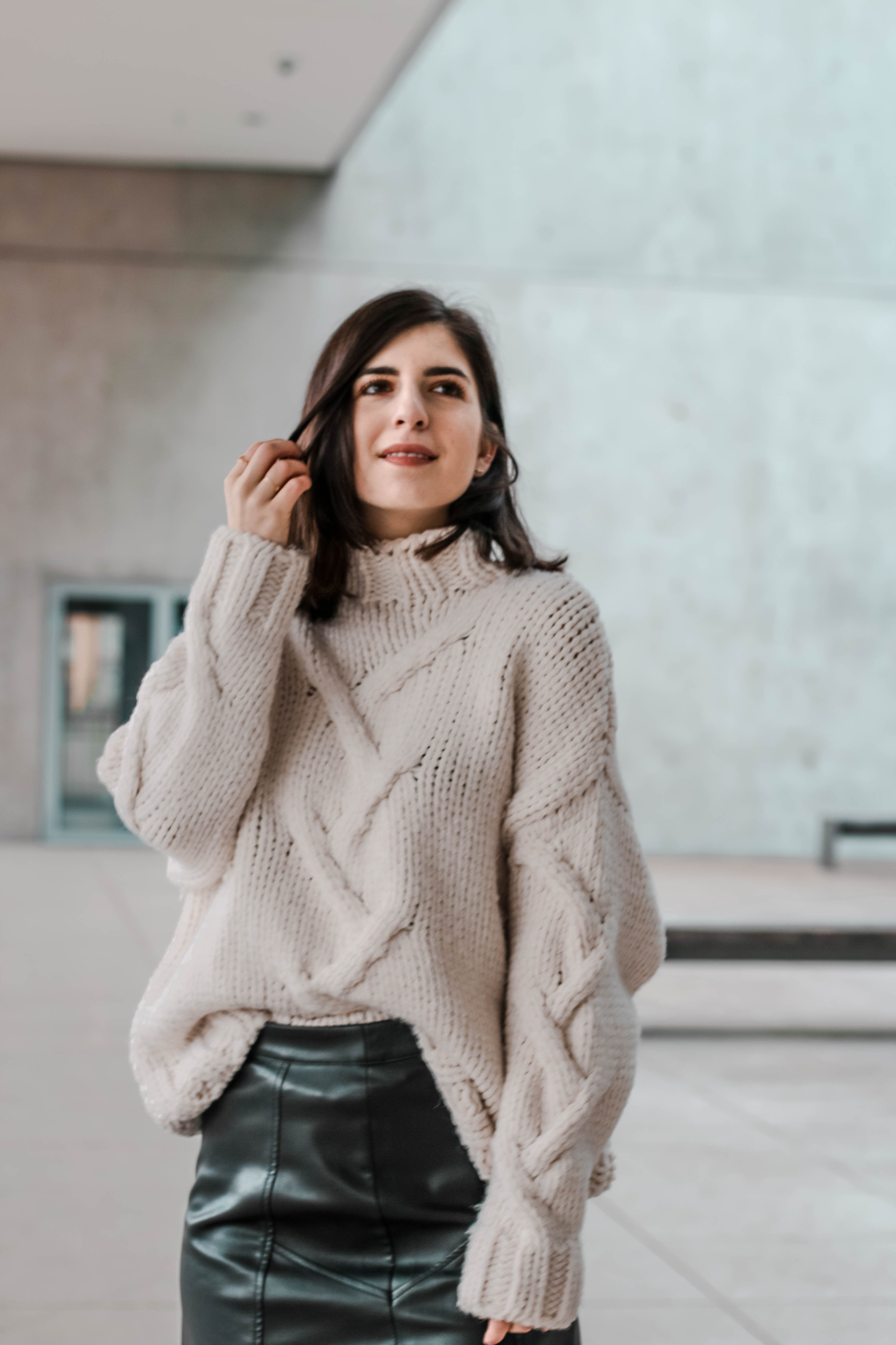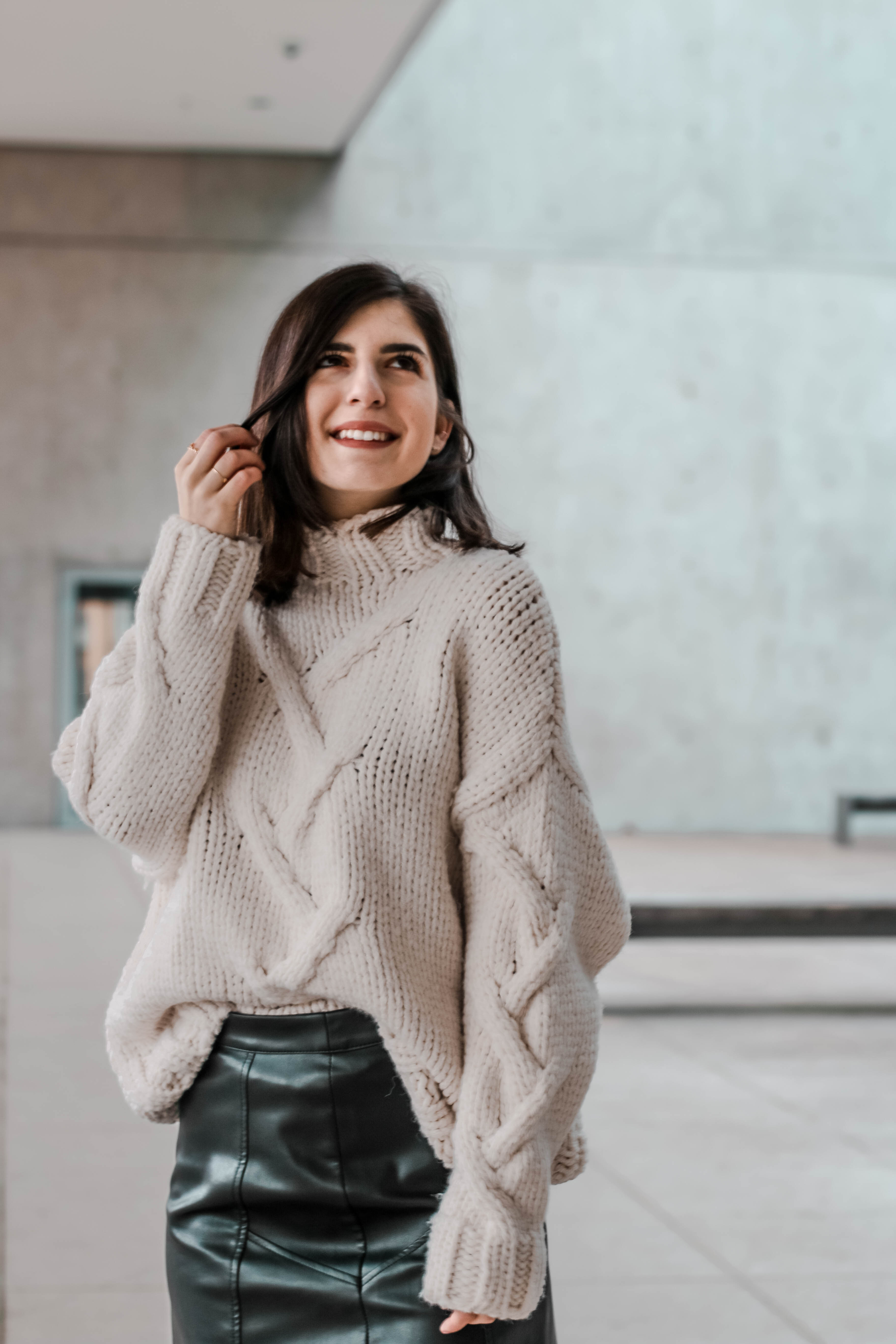 Mir gefällt dein Outfit super gut Mara! Der Pulli ist der wahnsinn, so klassisch, dick, kuschlig, mit Zopfstrickmuster und Rolli – ein Traum! <3