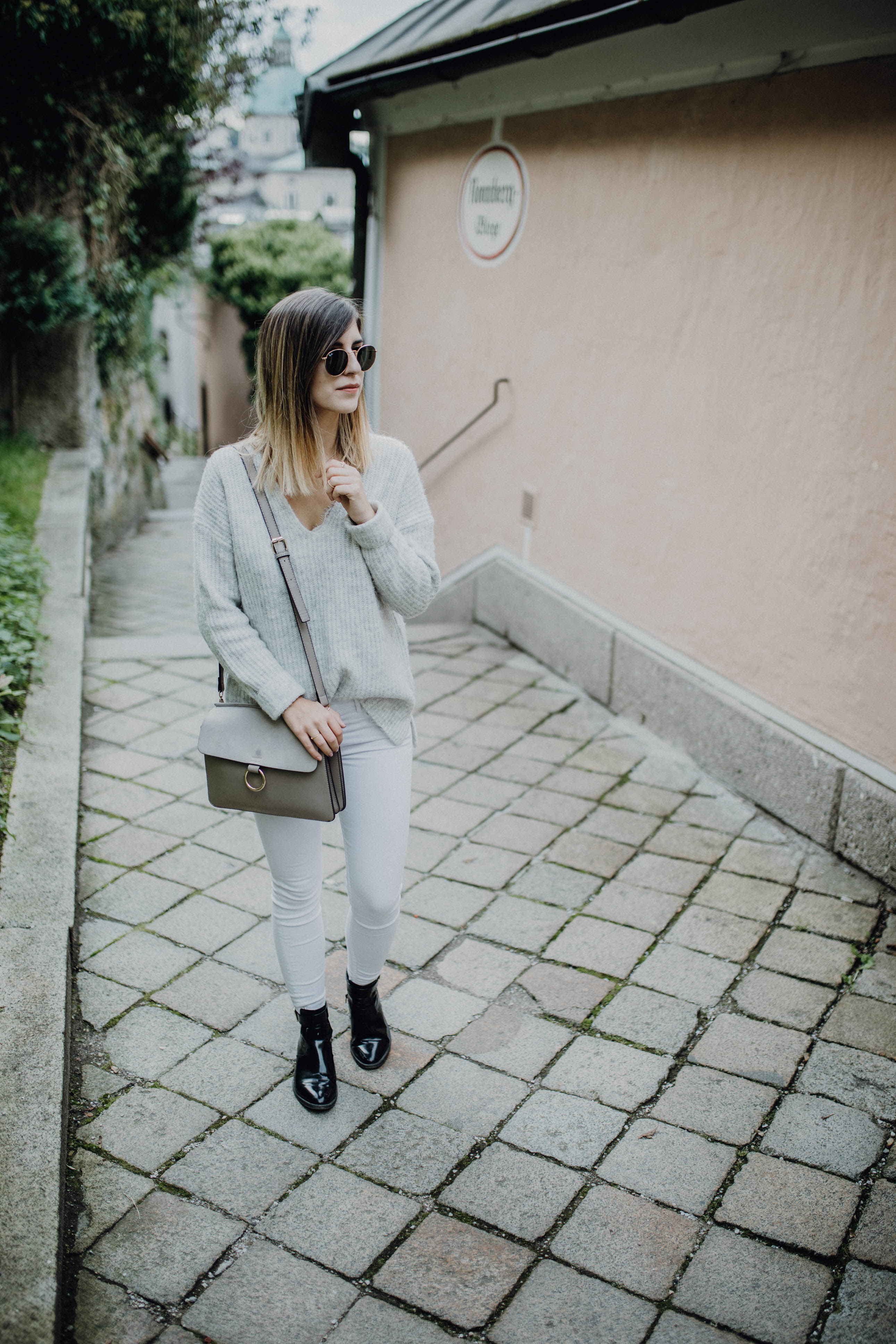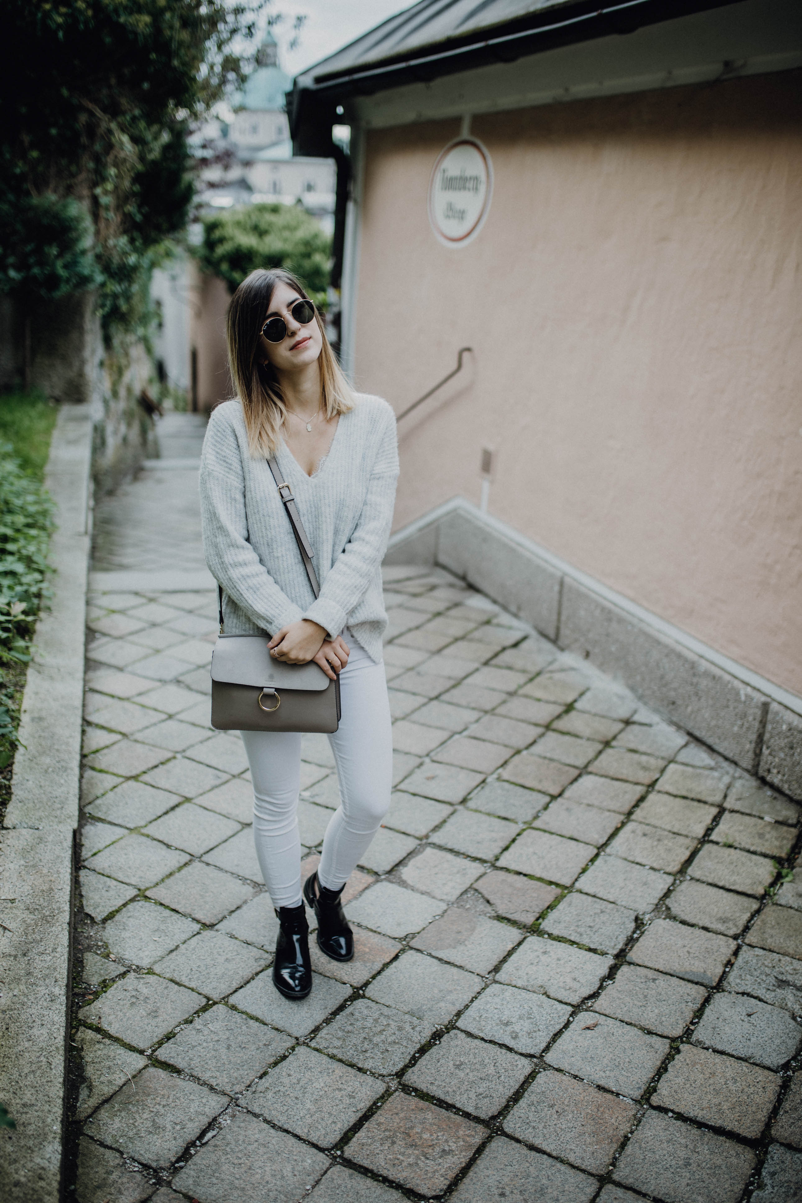 Übrigens sieht man mich auch selten in einer weißen Hose. Da der Herbst aber eh schon genug grau ist, dachte ich mir, eine hellere, positive Farbe eignet sich perfekt für diesen Look. Meint ihr nicht auch?