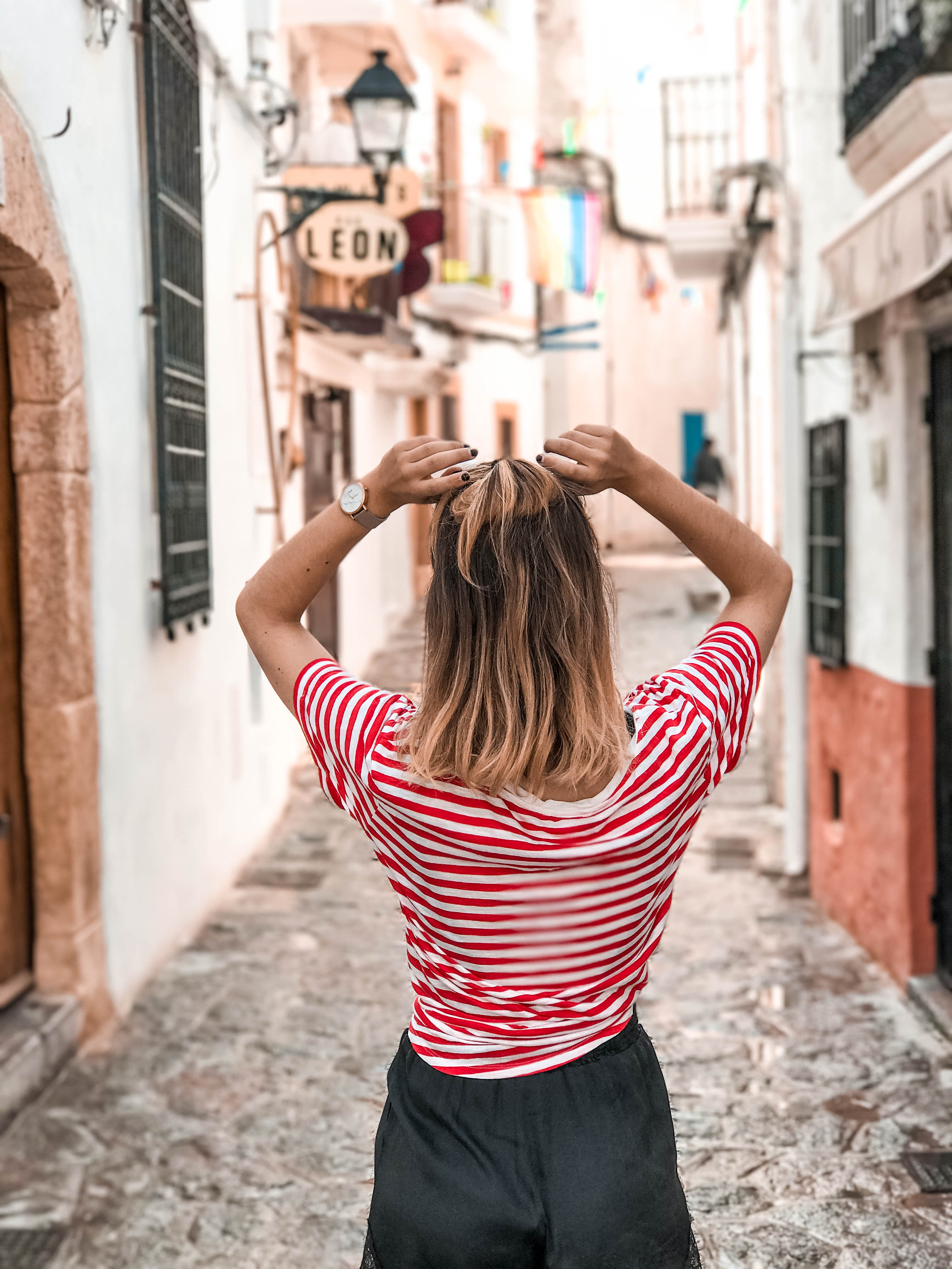 Ibiza ist ja bekannt für die Hippies, die dort ihre Wurzeln geschlagen haben. Das merkt man auch ganz klar auf der Insel, denn die Spots sind oft sehr bunt und recht fröhlich. Das könnt ihr perfekt an den folgenden Bildern erkennen. 🙂 Vor allem das Zentrum der Insel, Ibiza-Stadt (Eivissa), hat mich mit seinen weißen Häusern, bunten Fenstern und süßen Schmückungen absolut vom Hocker gerissen. Es gibt dort auch so unglaublich liebe Läden und Restaurants, welche leider alle ziemlich teuer sind, aber dafür total fancy sind. 😛