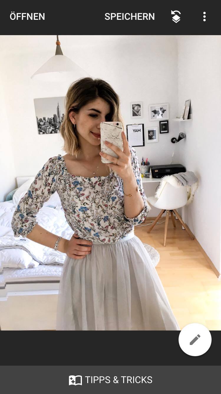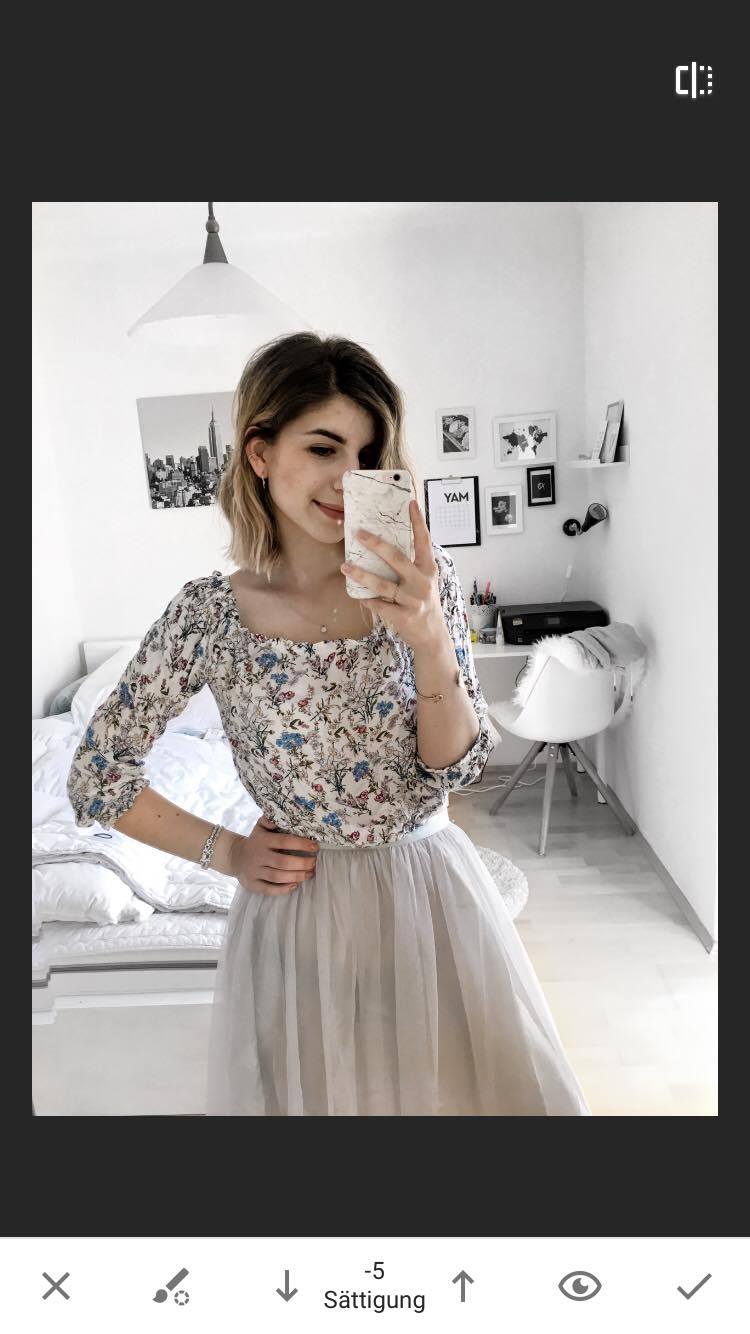 Snapseed ist so ähnlich wie Facetune, nur kostenlos. Auch hier könnt ihr die Helligkeit bei spezifischen Bereichen verändern. Bei Spiegelbildern sind zum Beispiel verschiedene Stelle im Gesicht sehr dunkel oder ein Schatten liegt darin. Mit Snapseed kann man diese Stellen einfach aufhellen.