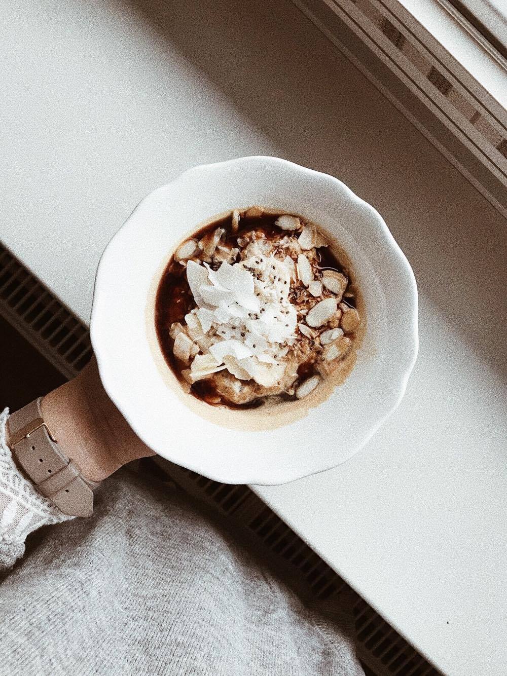 ÜBRIGENS: Diese Woche habe ich richtig viel selbst gekocht. Ich liebe es zurzeit einfach, neues auszuprobieren, herumzuprobieren, und frisch zu kochen. Auch gefrühstückt habe ich diese Woche öfters, was für mich ja eigentlich recht untypisch ist. 🙂 Zum Beispiel ein Oatmeal mit Mandeln, Kokos und Kaffee. Oder Teriyaki Nudeln mit Gemüse. Yum!